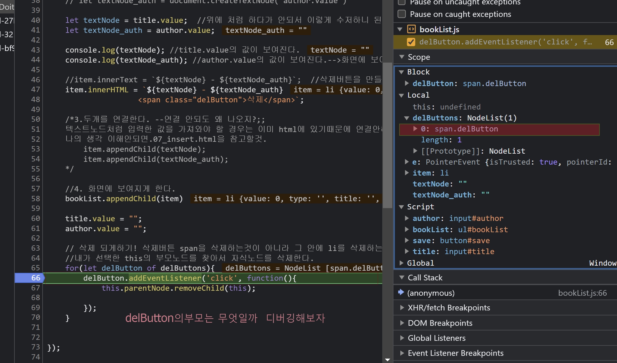 //item.innerText = `${textNode} - ${textNode_auth}`; //삭제버튼을 만들 수 없다.
